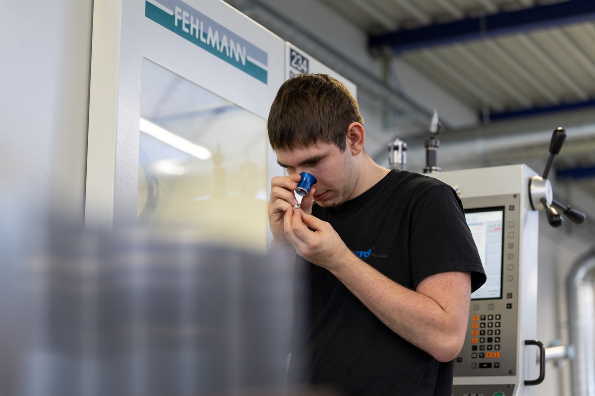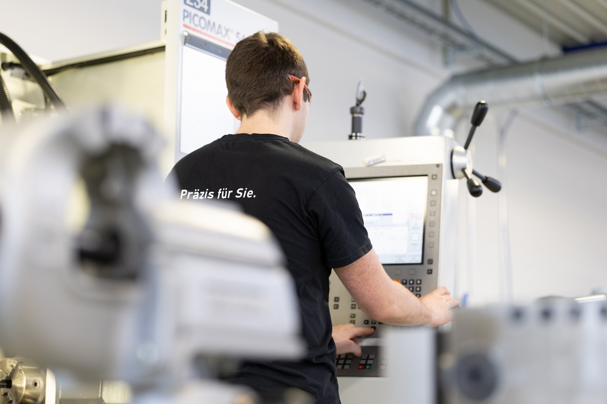 Im 3. und 4. Lehrjahr erhältst du die Möglichkeit, im grossen Werk mitzuarbeiten. Dort erlebst du die industrielle Praxis hautnah und arbeitest mit modernen, hochpräzisen Produktionsanlagen. So wird aus dem Einstieg in der Lehrwerkstatt eine spannende Weiterentwicklung in Richtung Hightech-Fertigung.